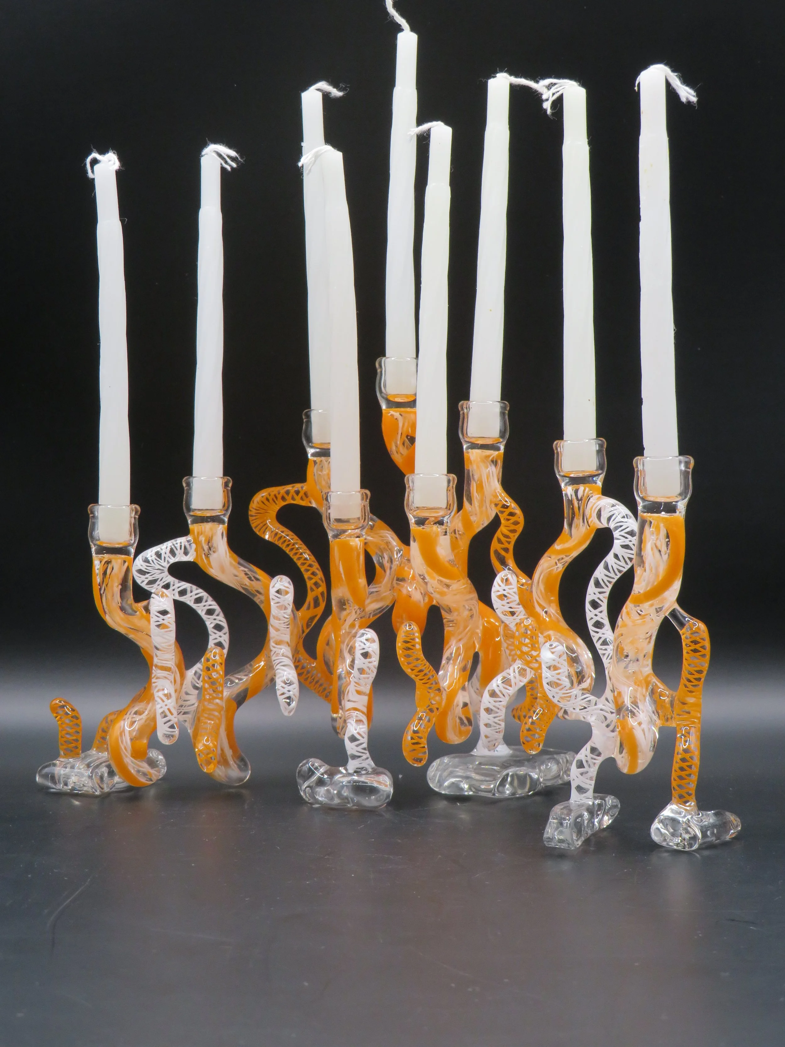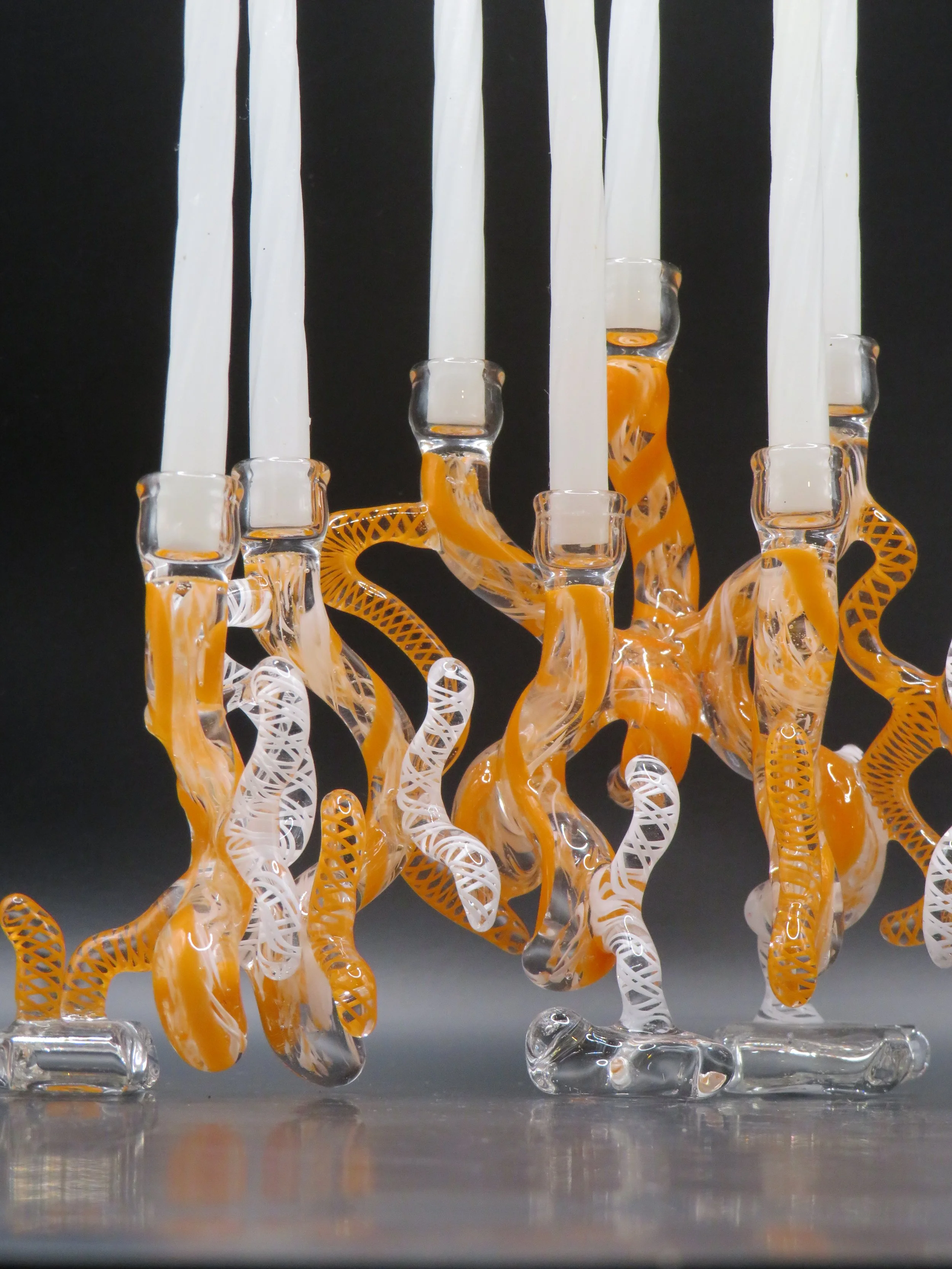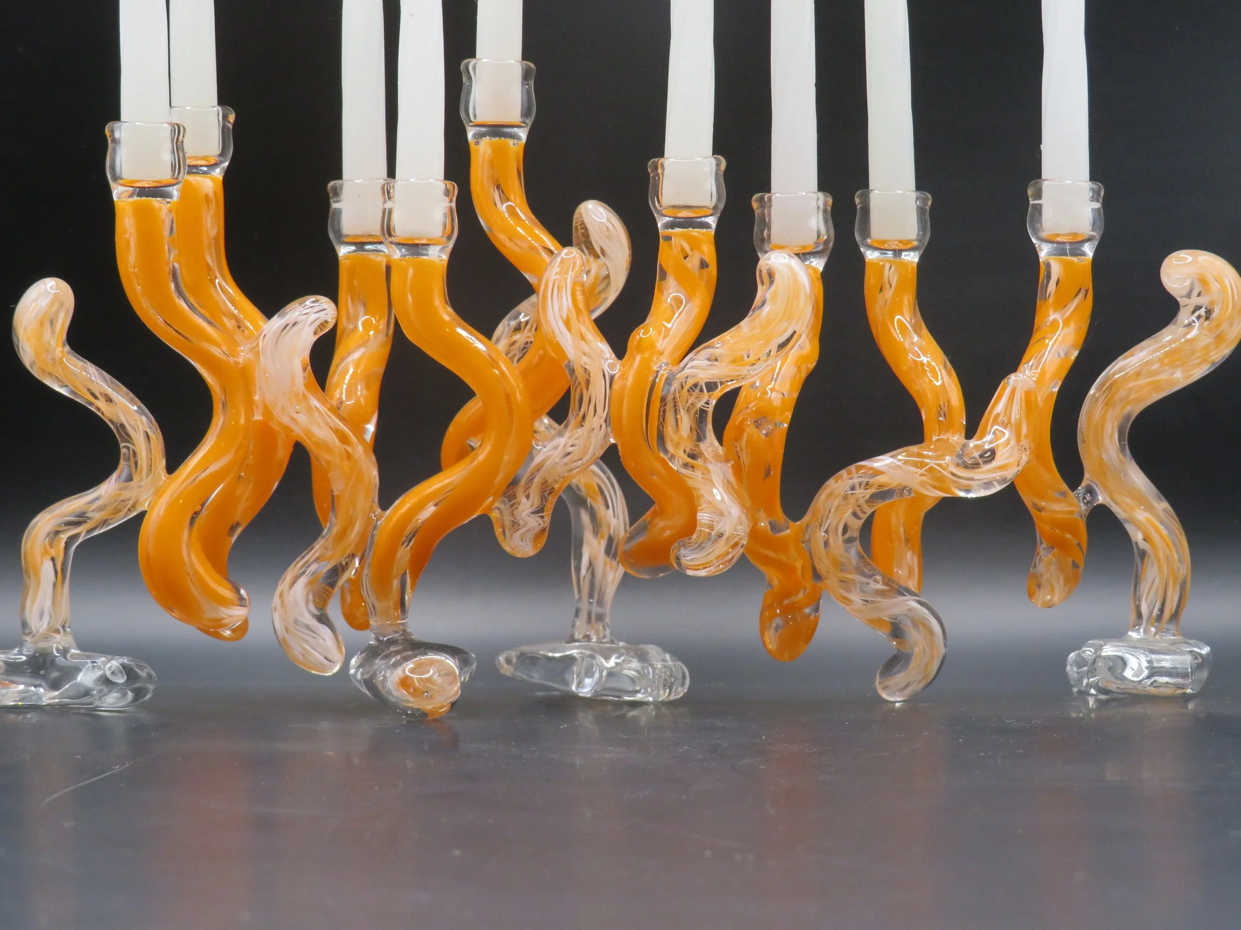 A one-of-a-kind menorah crafted from your wedding glass. Comes with a custom Pelican-style hard case for secure storage and shipping. A stunning heirloom for Hanukkah celebrations for generations to come.